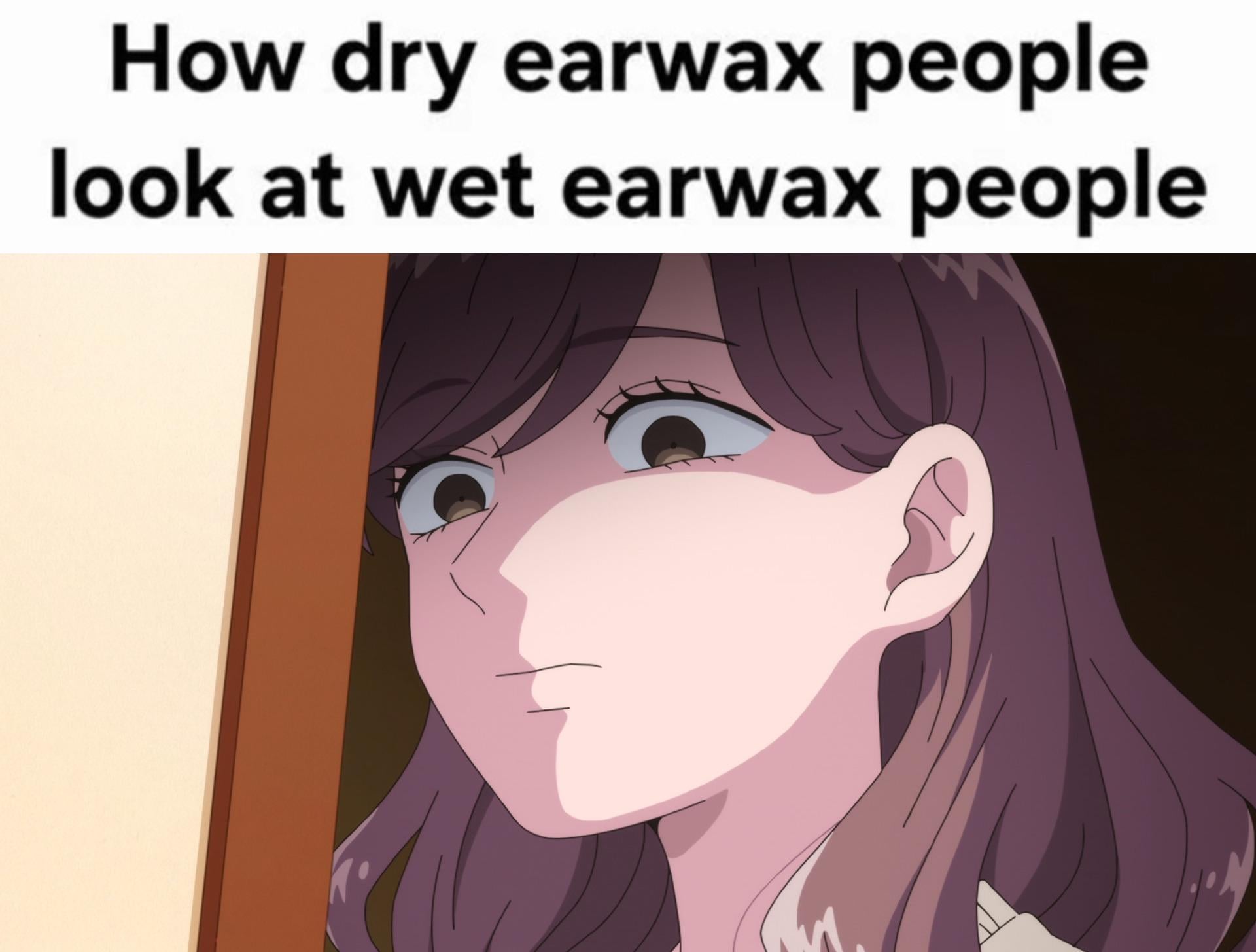 1. Hard Ear wax people have no idea what they have to deal with and the joy us wet ones have. We just have to wipe our earbuds after use.