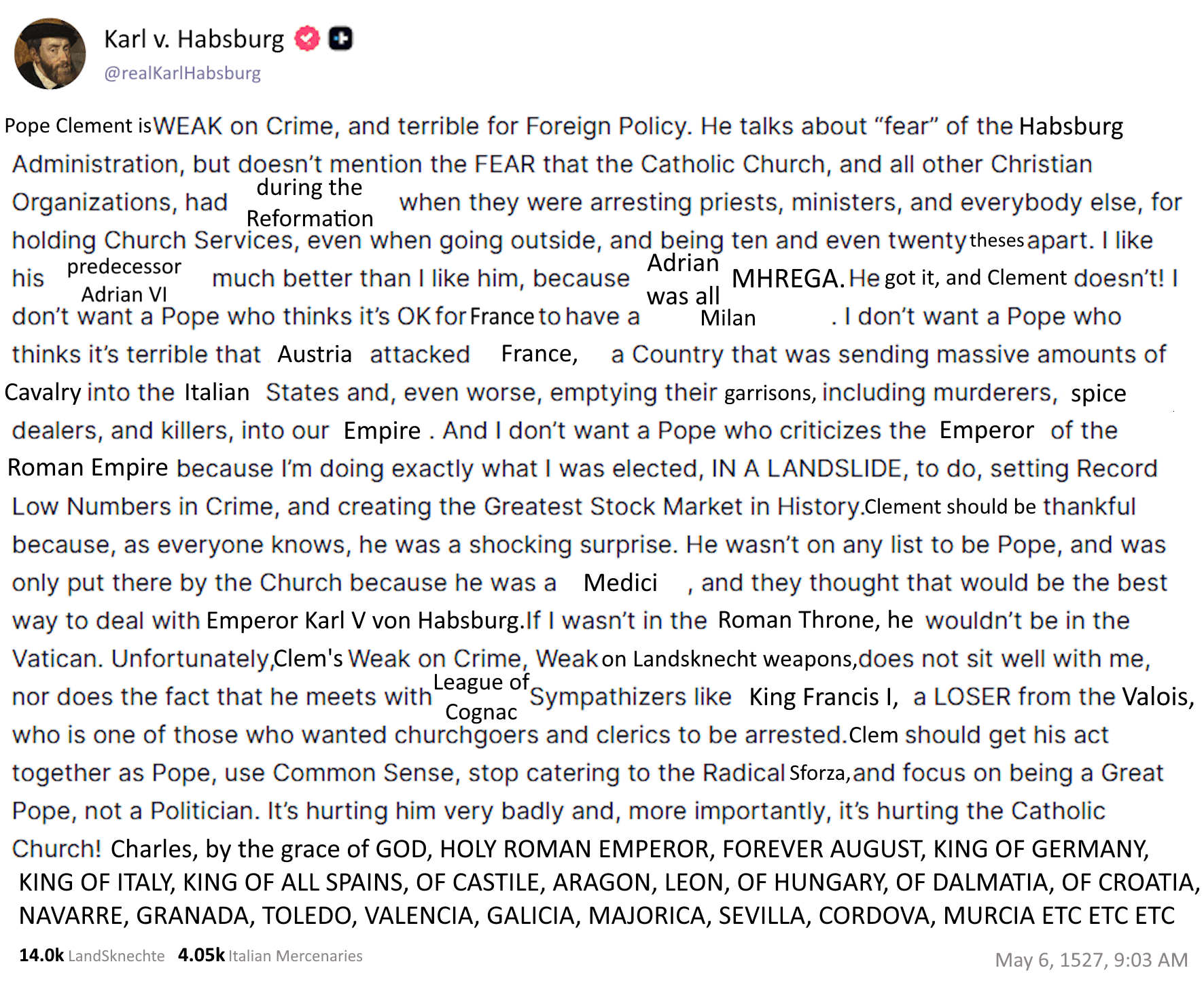 Henry VIII🤝 Karl V 🤝 Trump