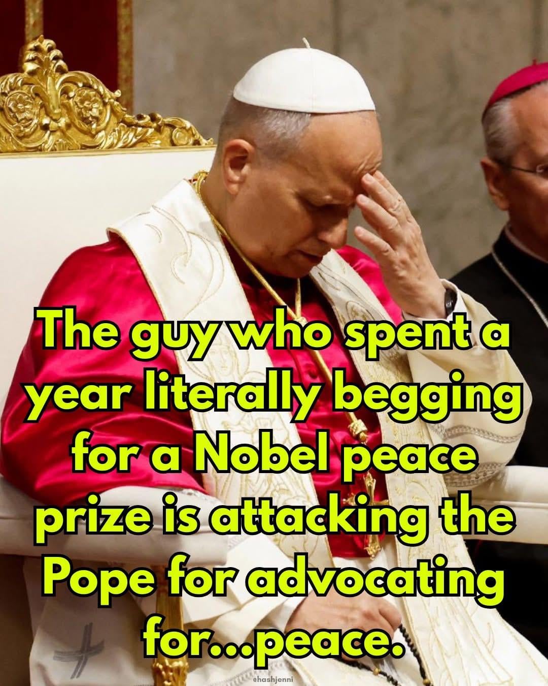 Sure would be a shame if the first American Pope got the Nobel Peace Prize for standing up to the American President… /s