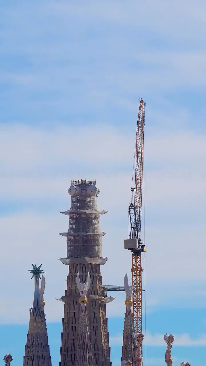 After 144 years of construction, the Sagrada Família in Barcelona has reached its full height with the placement of the final piece atop its central tower