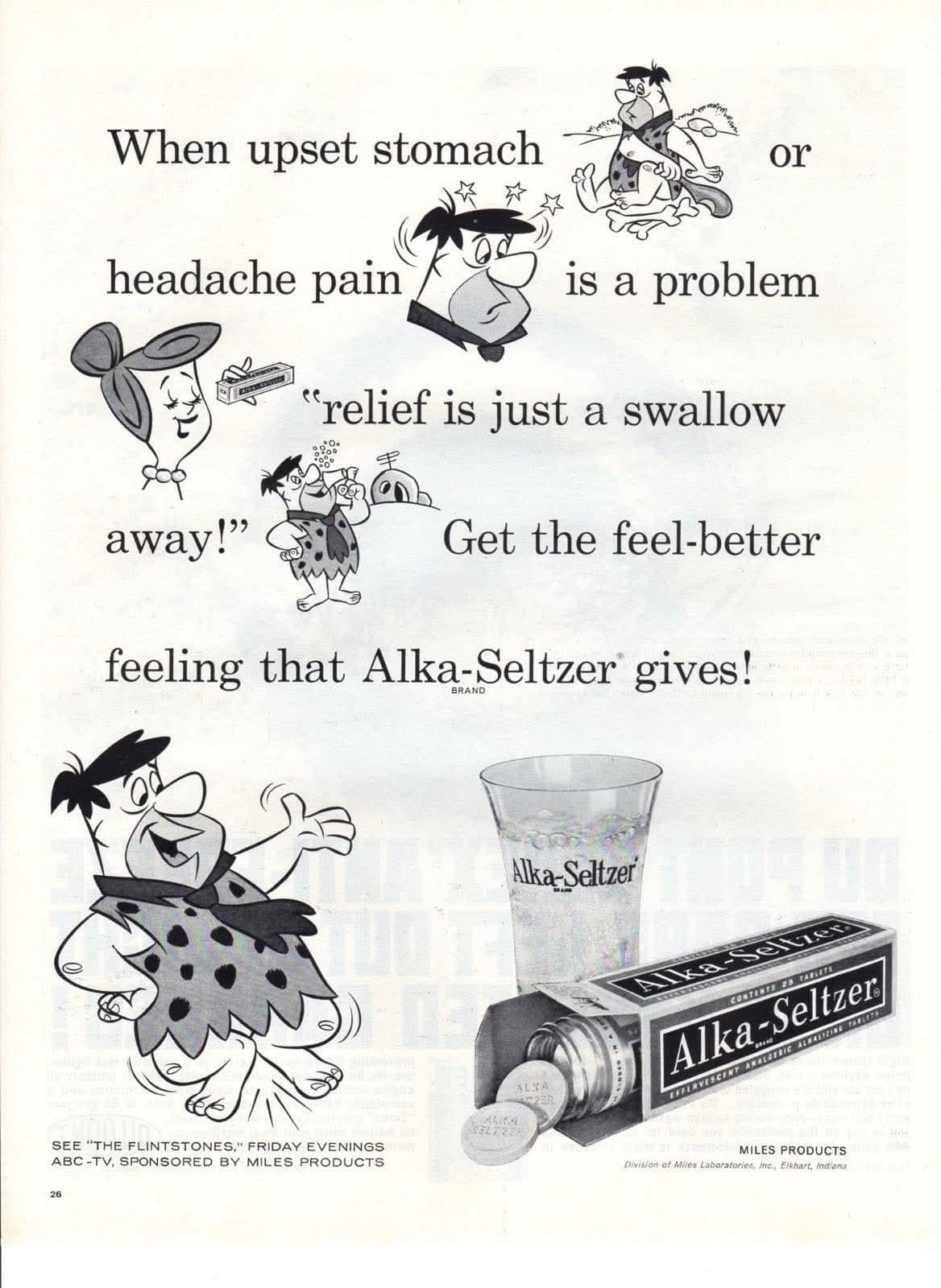 It makes perfect sense- after the kids tried a Winston, like Fred, they get an upset stomach and a headache- this is where Alka-Seltzer comes into play.