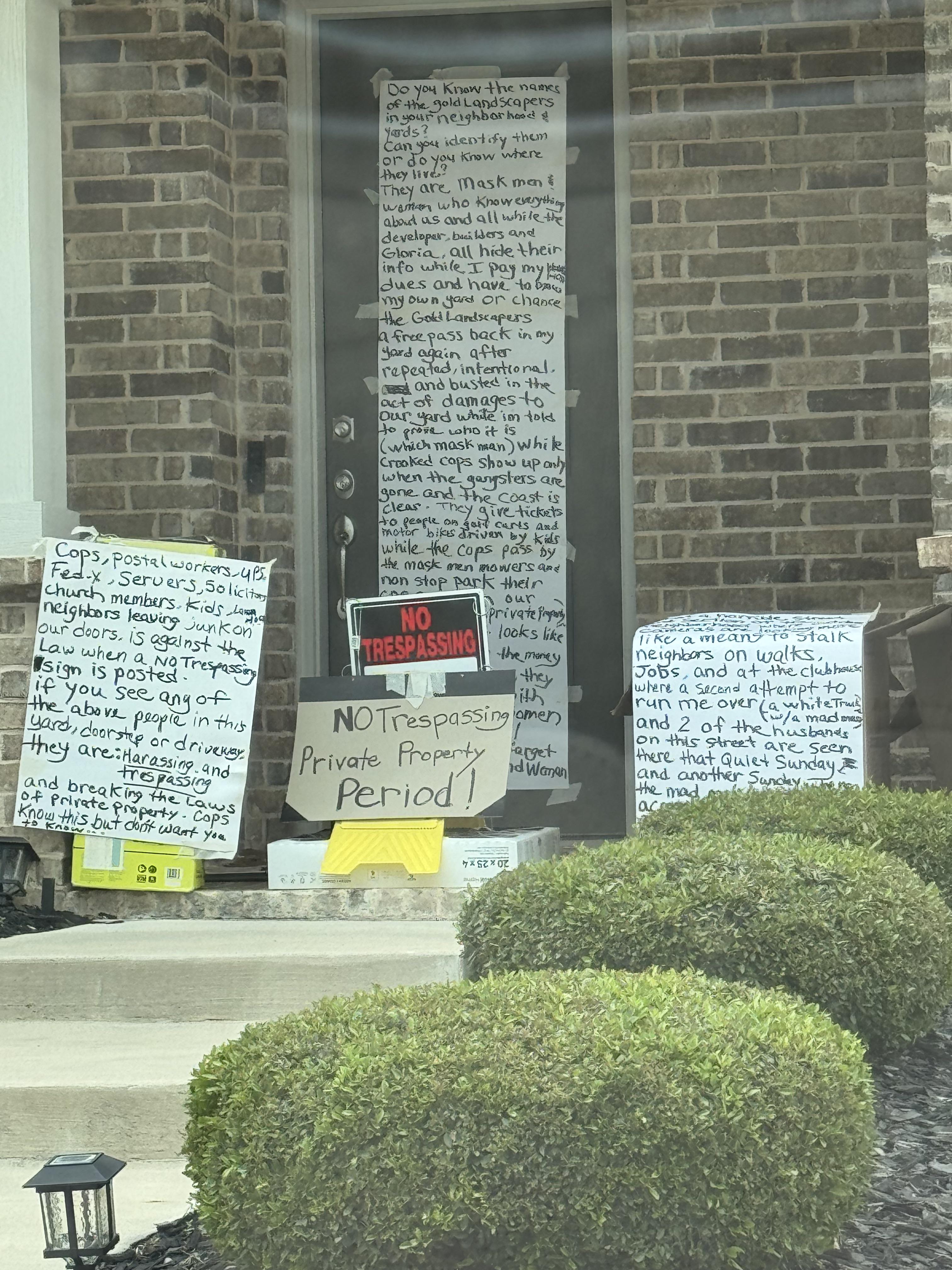 5. They do not like solicitors. Or apparently anyone else. I read the left sign and half of the door. They don’t trust landscapers.