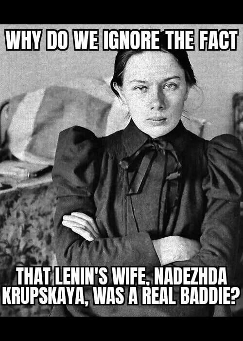 Fun fact: she apparently witheld Lenin’s Testament (in which he warned that Stalin, Trotsky, Bukharin, Zinoviev, Kamenev and Pyatakov would destroy the Bolshevik Party and called for Stalin’s removal from office) from being released because she was worried the stress of the fallout would worsen Lenin’s health.