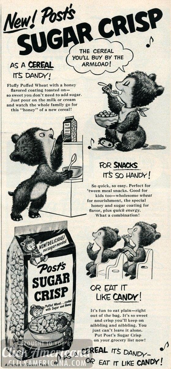 Remember Sugar Bear Post Sugar Crisp cereal? 1950s🐻 Can’t get enough of that Sugar crisp.
