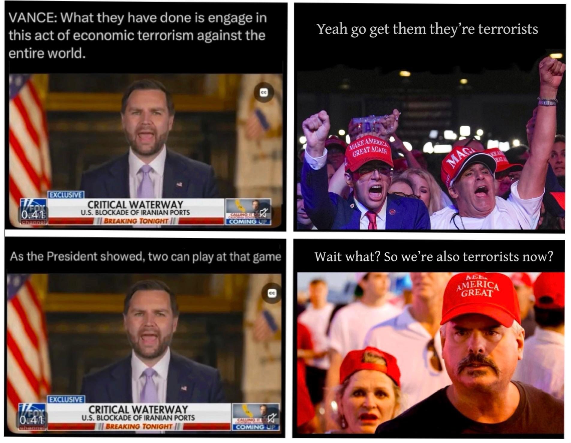 MAGA doesn’t care that they are terrorists. They embrace hypocrisy. Its their superpower.