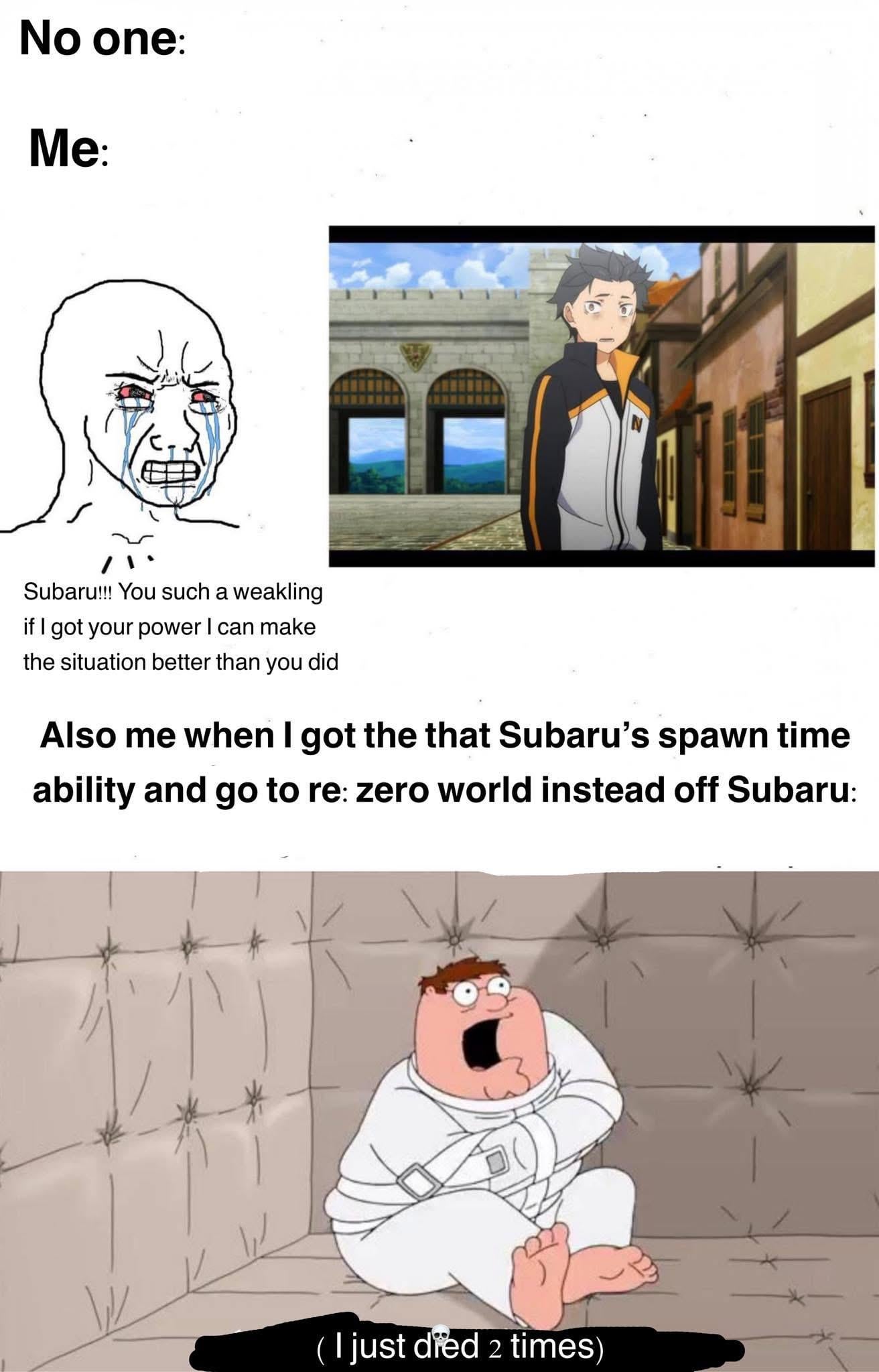 I like the world but I would NEVER want to be subaru. I can barely deal with a dark souls game, what the hell im gonna do with my whole life be like that. You can say what you want about him but his mental fortitude is nearly unmatched.
