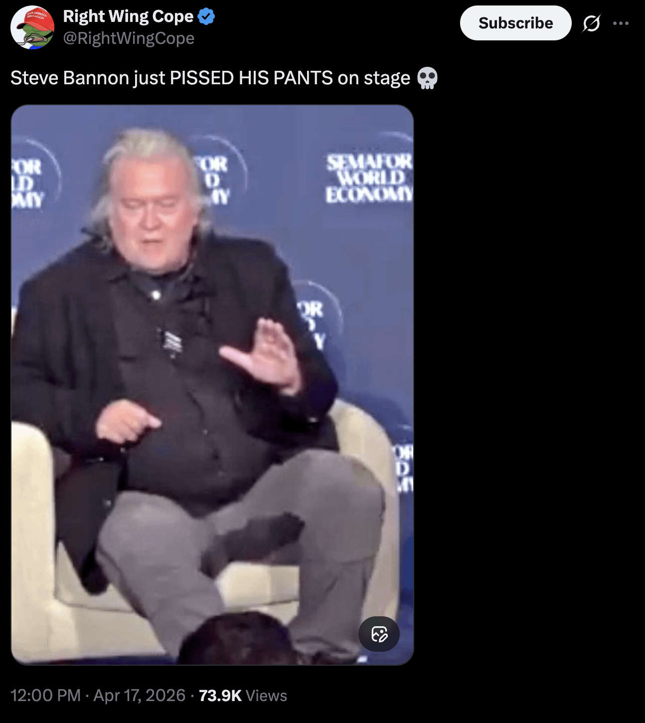Either way… I am wildly upset to have just spent my lunch break staring at Steve Bannon’s crotch. Happy Friday, everyone.