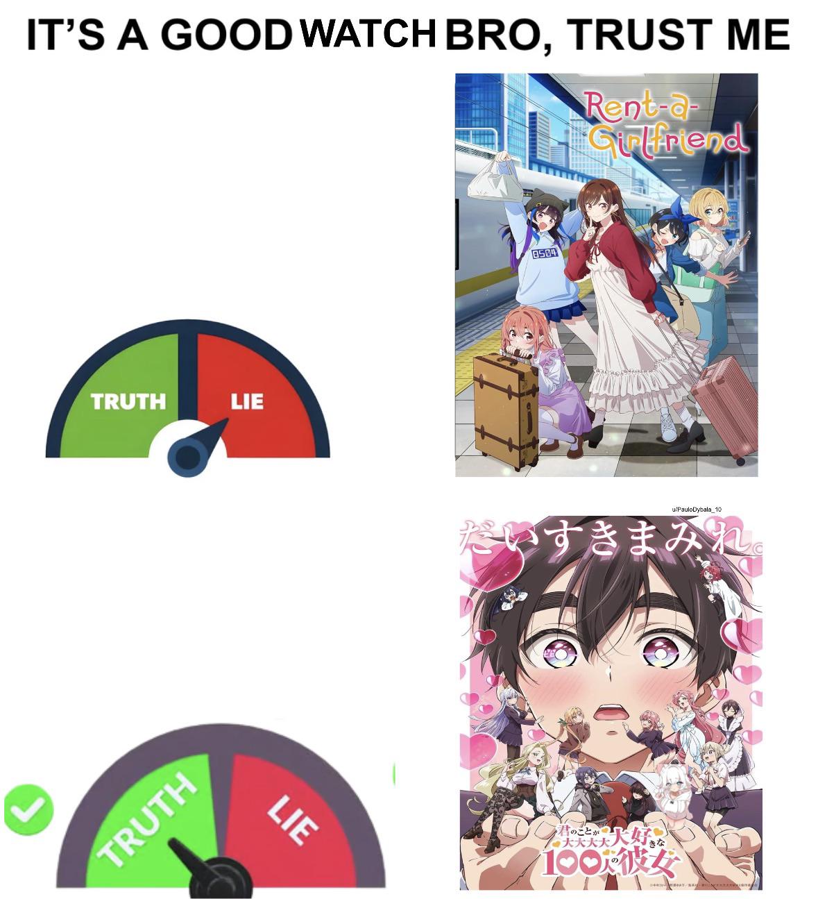 I couldn’t even finish the first episode of Rent a Girlfriend, I almost died of cringe.