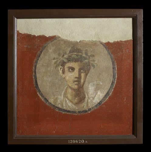 Roman fresco showing a young man holding a scroll labelled ‘Homer’, House of the Apartment, Pompeii. Object dated back to I century CE. [497×500] by imperiumromanum_edu