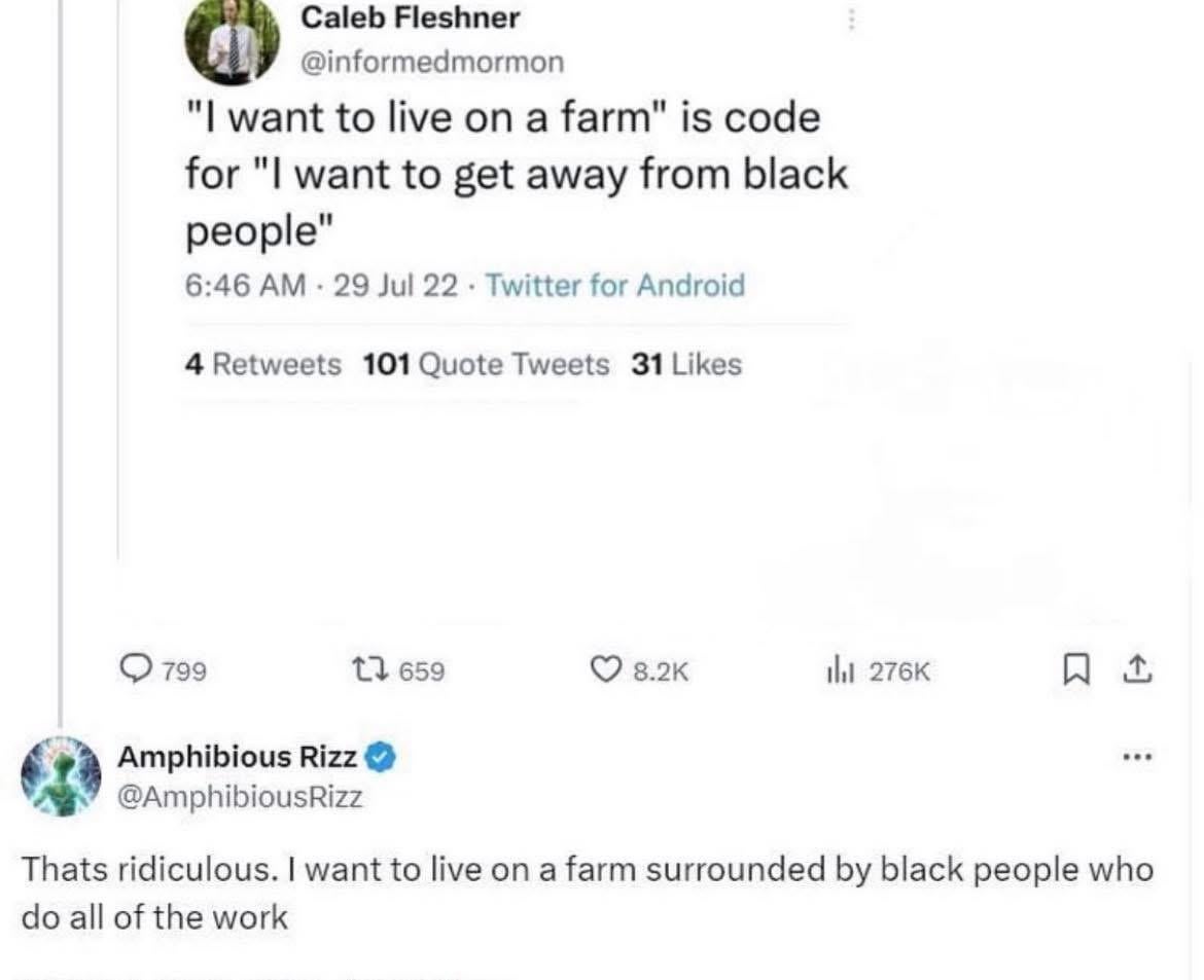 That was racist to start with but im glad it turned out…. wait what does he mean, surely they all work together?