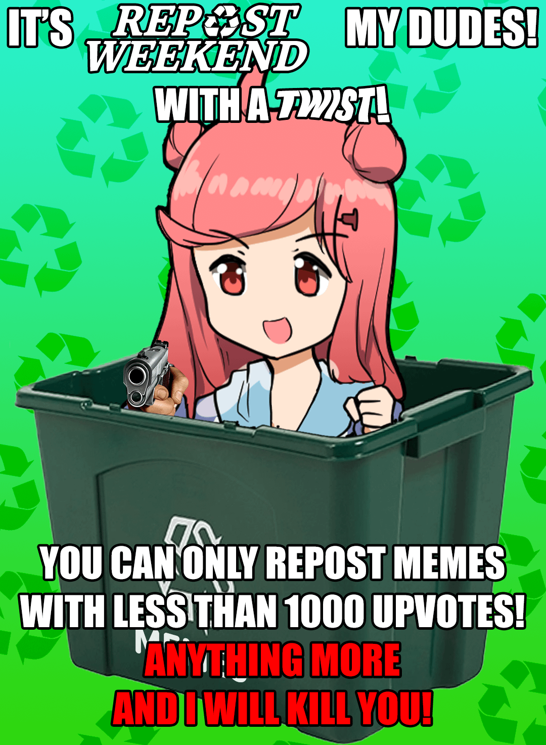 AnimemesBot on April 18, 2026 2:54 pm Possible repost of: | Submission | Author | Age | 🙂 | | :- | :- | -: | :-: | | [Repost Weekend | Details in the comments!](https://redd.it/1o9hdn4) | DaLinkster | 182 days | |