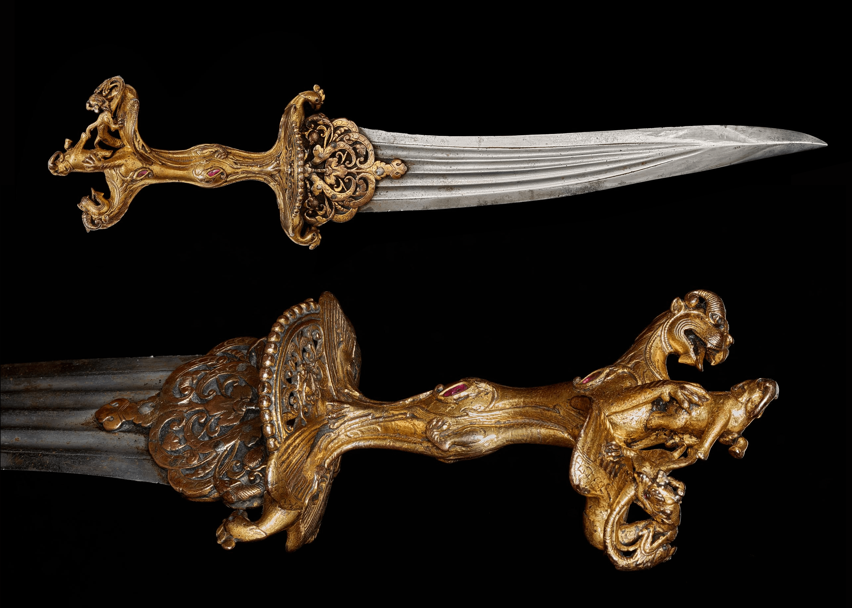 The zoomorphic hilt was clearly influenced by Hindu art, and it is in fact possible that the dagger was booty taken from Vijayanagar, which the united Deccan sultans conquered in the battle at Talikota in 1565.