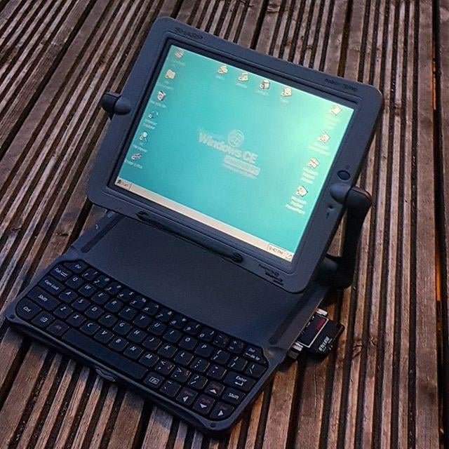 I had one of these that I picked up in 1999 from a Microsoft store (MS's first foray into retail) in the Metreon in San Francisco. I bought a wireless card to fit into the PC slot and actually surfed the web wirelessly via my cell service way back then. It was like magic and I was living in the future! It ran Windows CE (compact edition) and for my money, it was a great system. CE was a stripped down version of Windows (no bloatware). The keyboard was one of the most satisfying keyboards I've ever typed on. It even had a stylus and touchscreen!