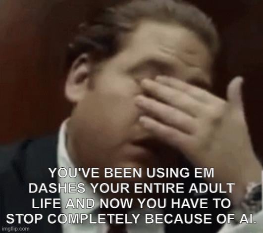 Haha good to know. I didn’t know about ai using a lot of dashes becouse I don’t use ai.