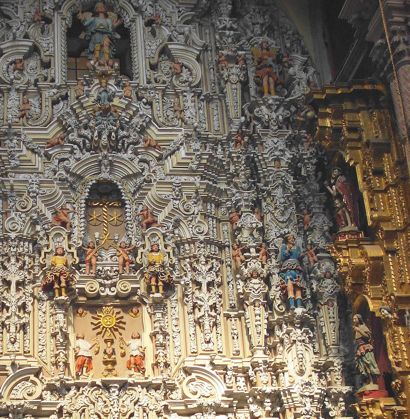 Altarpiece-façade of the Seven Princes, Templo de Nuestra Señora del Carmen, San Luis Potosi, Mexico, 1749-1764 – churrigueresque baroque [1351 x 1383]