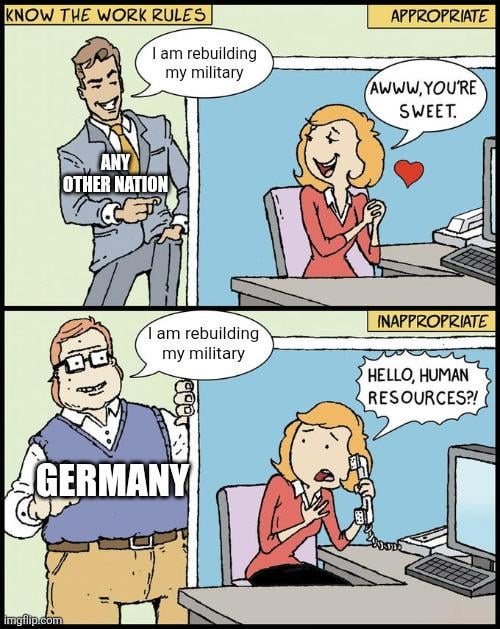I think you’re misreading this meme. It’s not a reference to present day, it’s referring to those two times that Germany declared war against the world.