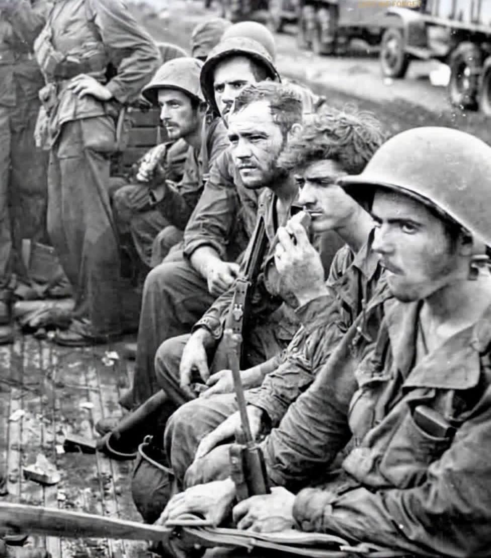 Weary Marines just off the front lines after 23 days on Cape Gloucester, January 1944 [976×1109] by UrbanAchievers6371