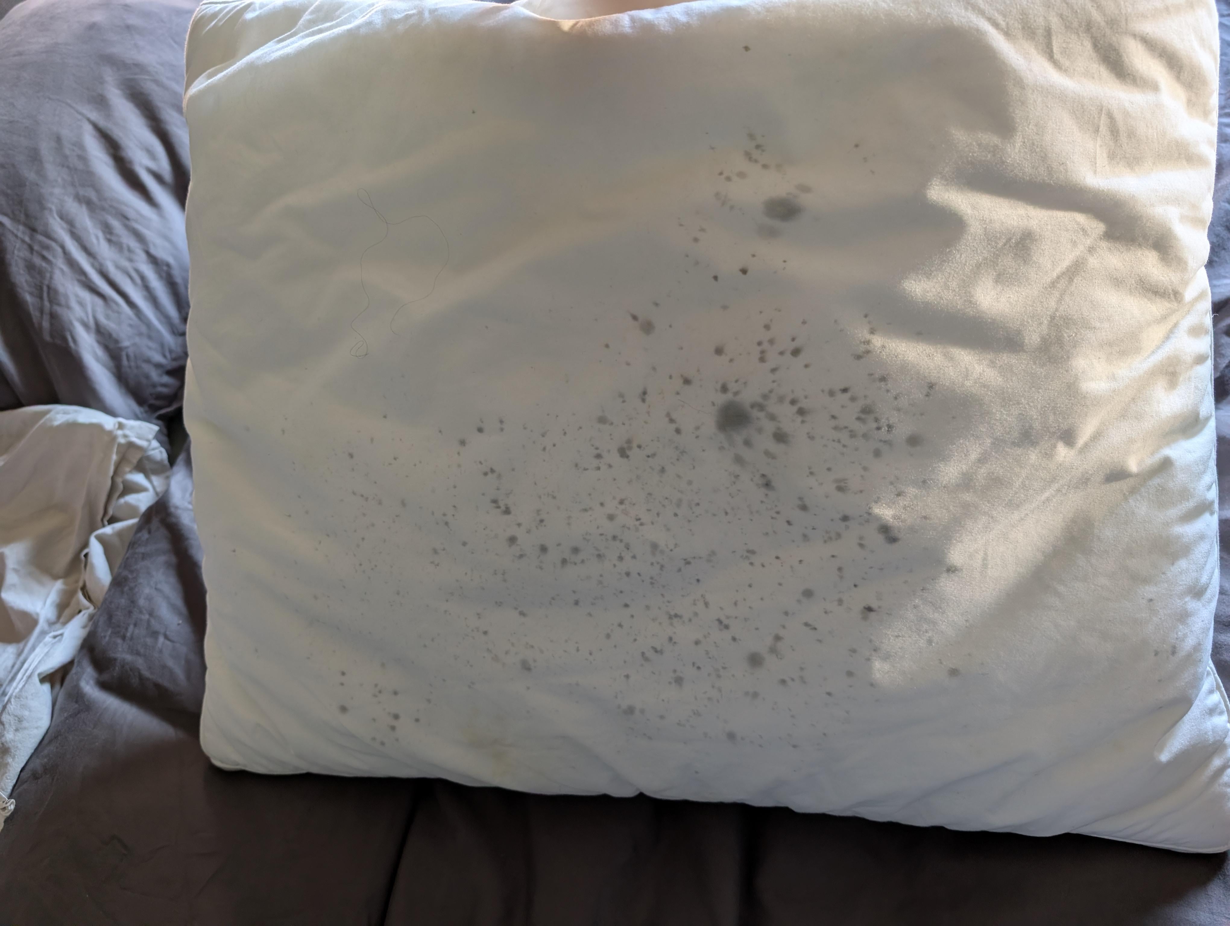 Like her drying her hair caused mold on the pillow? Or her drying her hair WITH the pillow?