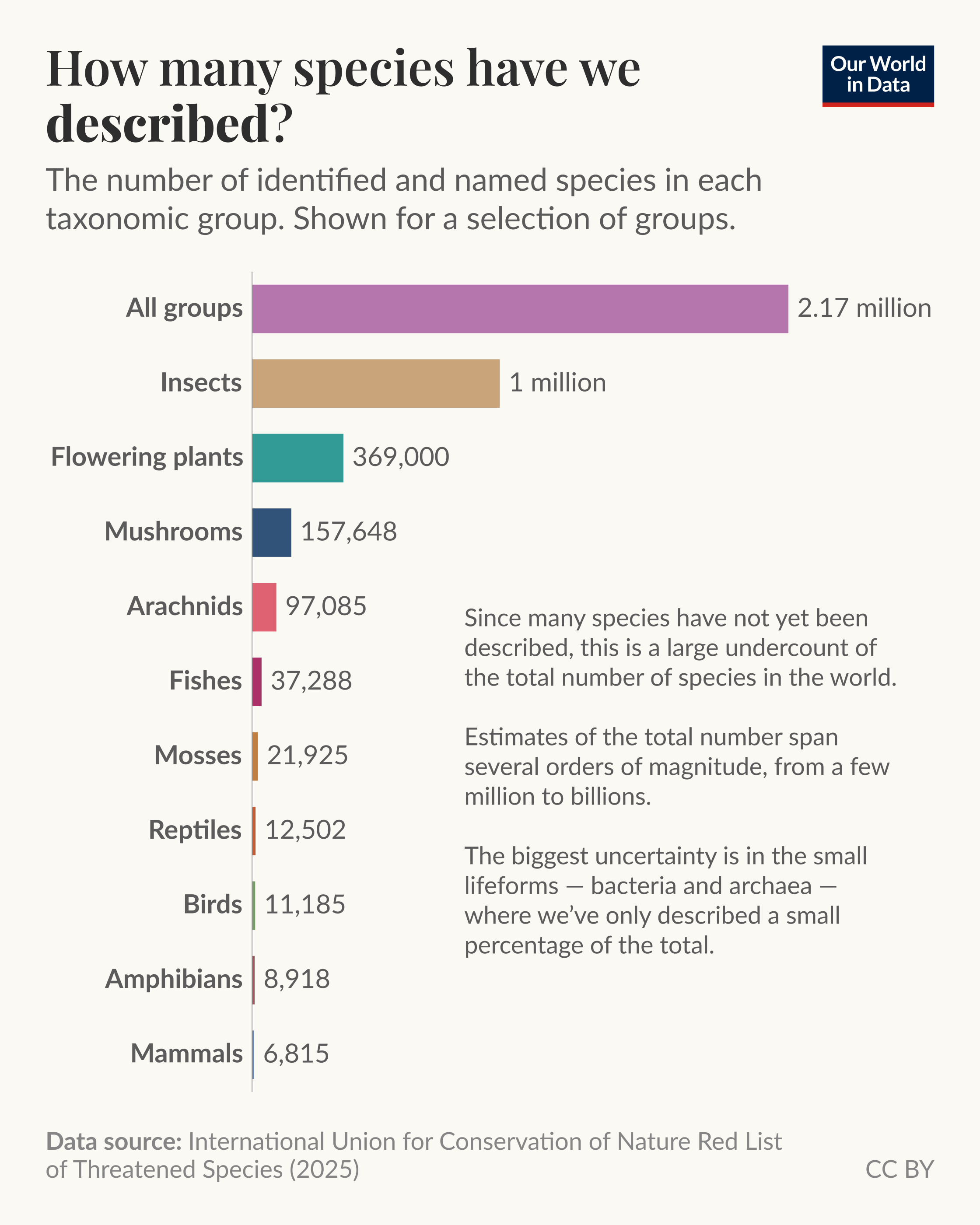 It’s humbling to see that mammals, the group we belong to and focus on most, represent the tiniest sliver of the chart at only 6,815 species. We spend billions on conservation for mammals while there are likely millions of insects and fungi doing the heavy lifting for our entire ecosystem that we havent even bothered to name yet. It really puts our “biological ego” into perspective lol