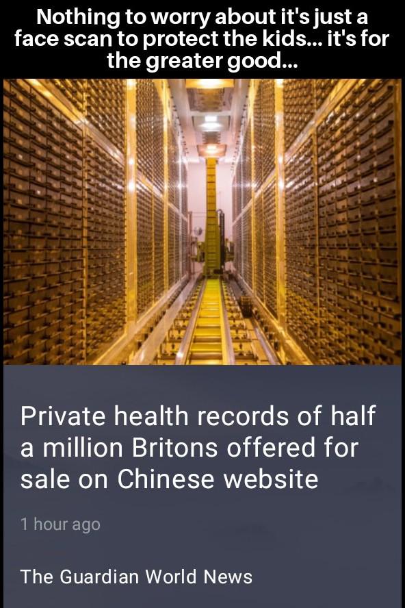 1. I mean how else do you poach people for organs if you don’t have data on them? Those Chinese millionaires need new organs.