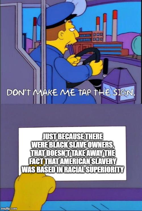 Were there black slave-owners? Yes, but they only were only <1% of the overall population of those who owned slaves. And while opportunistic/exploitative people exist in every demographic, also note that many had bought family to avoid being separated.