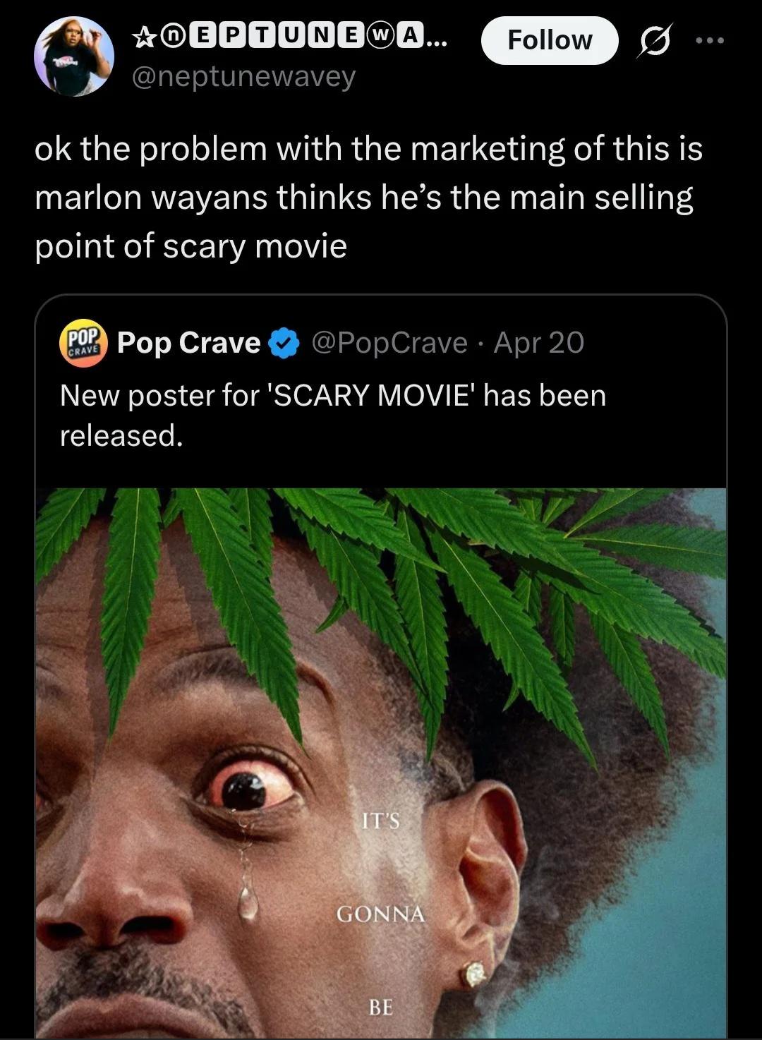 I like how all the trailers are like, “we are so anti woke and edgy” but they were obviously TERRIFIED of actually making fun of Michael Jackson so they just had Kenan Thompson as MJ fall down some stairs as the “joke.” Fuckin cowards.