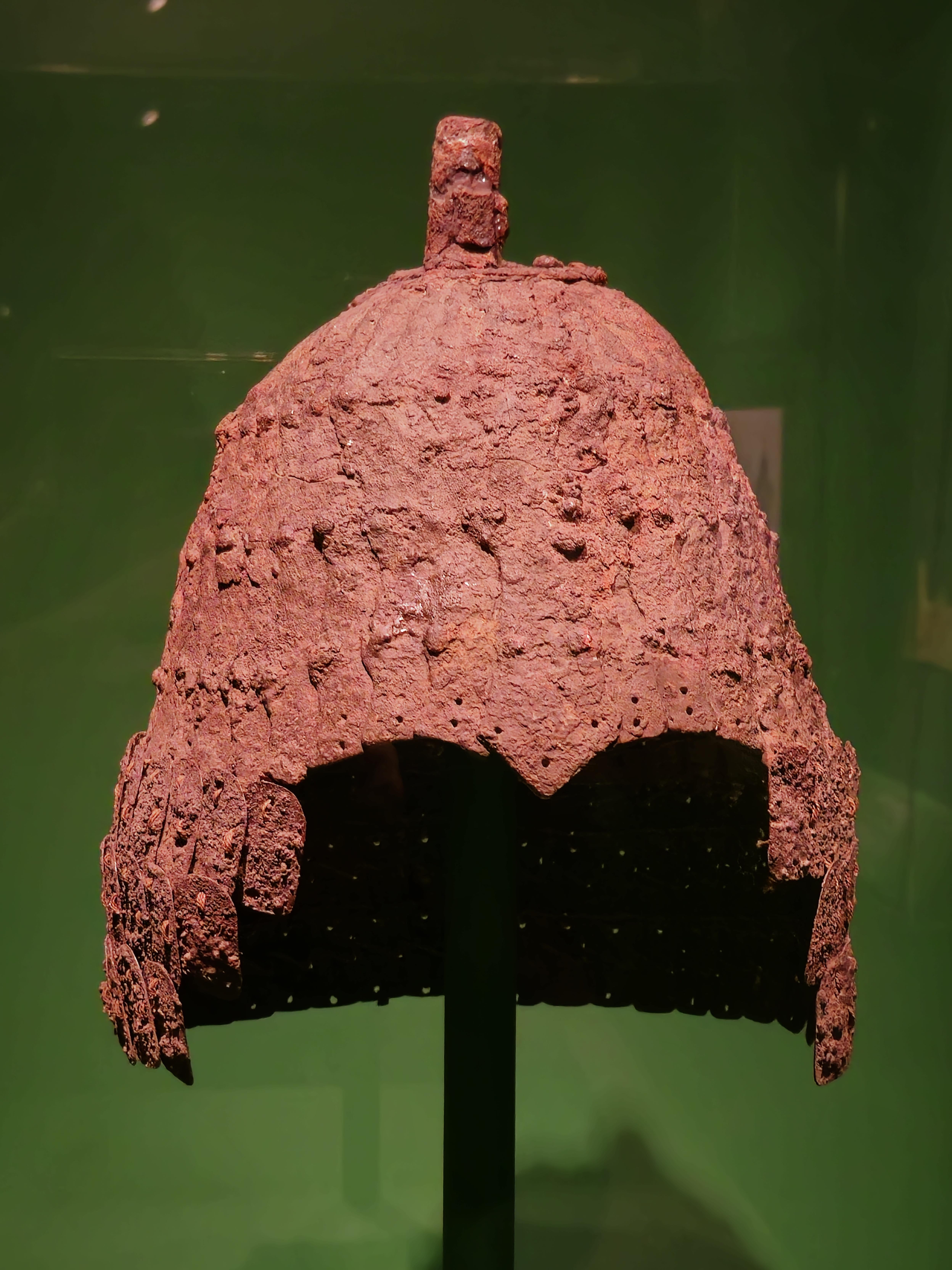 Iron helmet. Xianbei people, Former Yan state, Sixteen Kingdoms period (337-370 AD). Excavated 1998 at Lamadong near Beipiao, Liaoning Province, China. Loaned to the China Institute from Liaoning Provincial Institute of Cultural Relics and Archaeology [4992×6656] [OC]