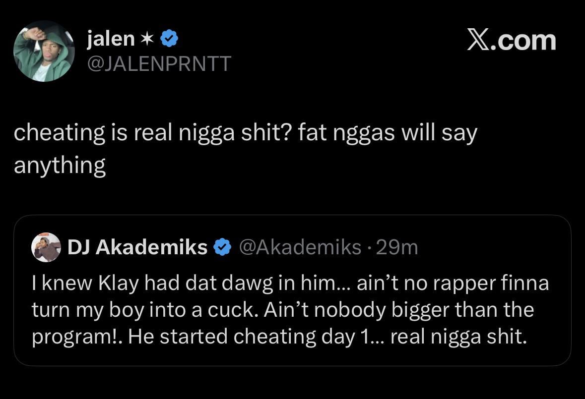 DJ Akademiks knows about cheating since he raw dick rides taken men all day long.