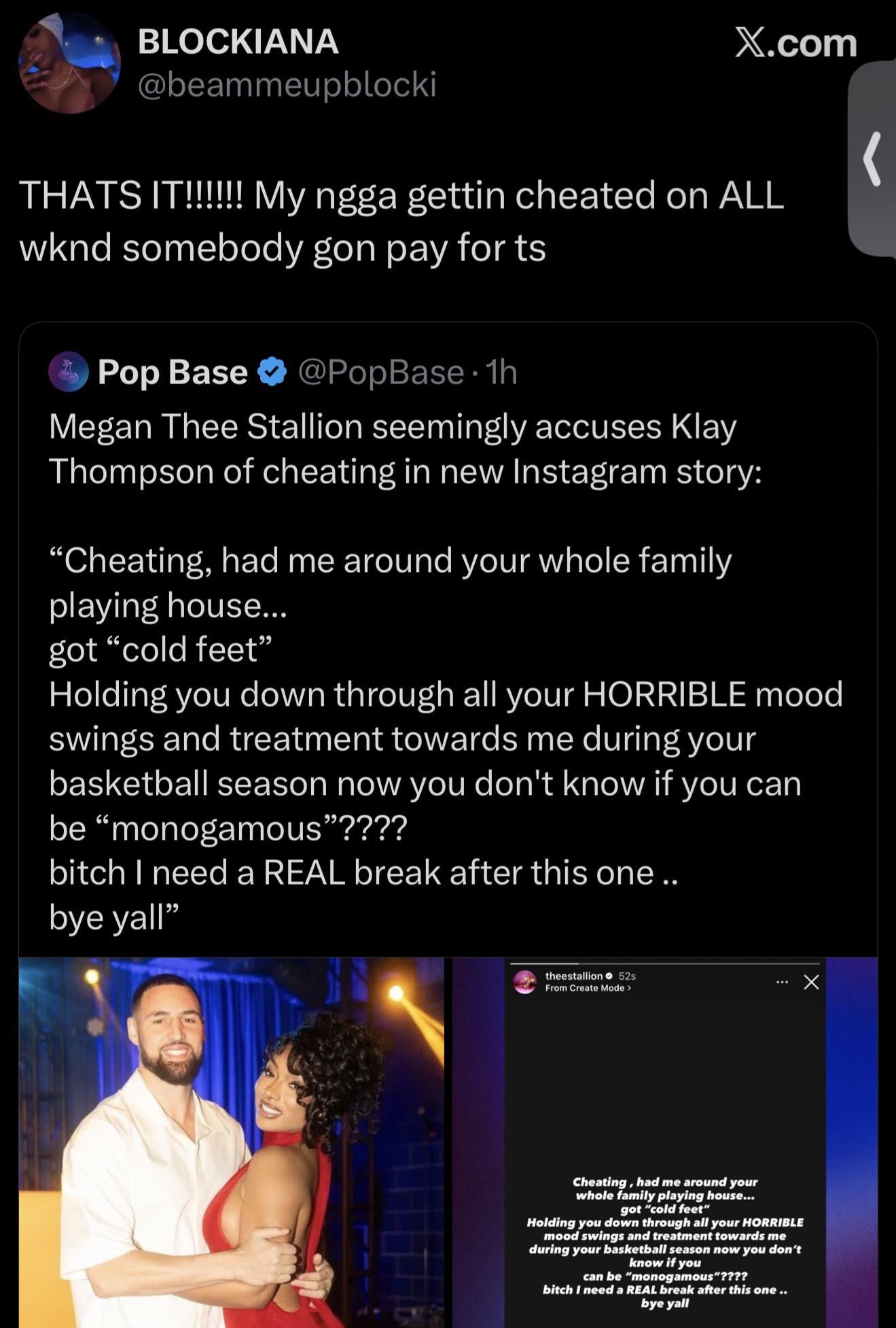 “Klay cheated on Megan, so I’m gonna cheat on my man as revenge”