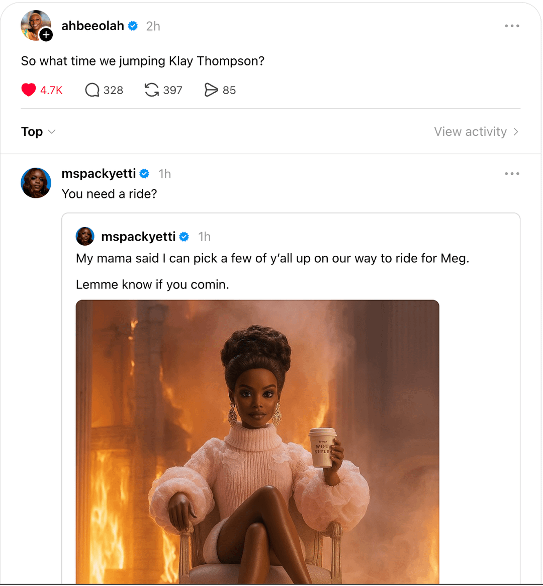 Klay better watch out. He fixing to get meme’s to death by people he’ll never see in real life.