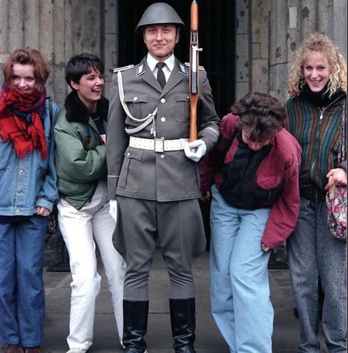 Tourists from the West, checking out an East German body guard, 1980s, East Germany [1170 x 1187] by No-Cream-2577