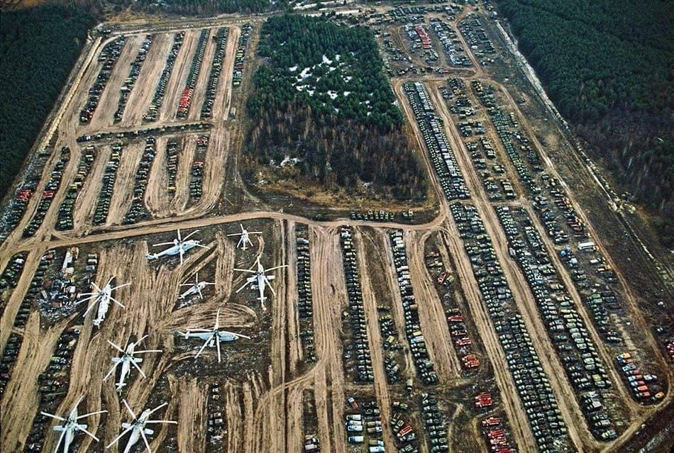 Radiation contaminated vehicles and military equipment which had been used for the cleanup in the aftermath of the Chornobyl Disaster – Chernobyl Exclusion Zone, Ukraine, c. 1993. [950 x 639]