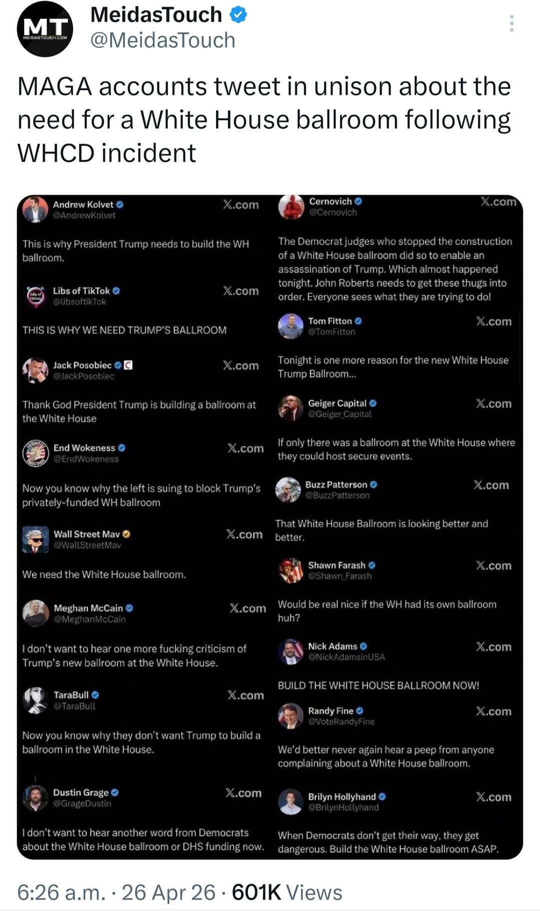 Good. The ballroom is a political disaster in a weak economy, anything to keep them talking about it is a bonus. Just keep digging the hole.