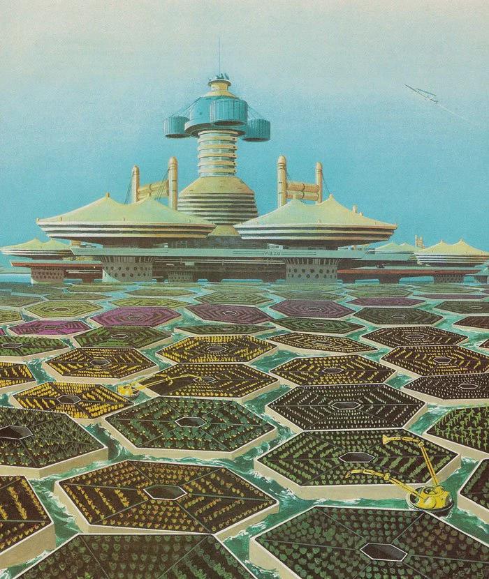 ‘Sea City of the Future’ .1984 . From the book ‘The Future World of Agriculture’ . The artist is uncredited . by SevenSharp