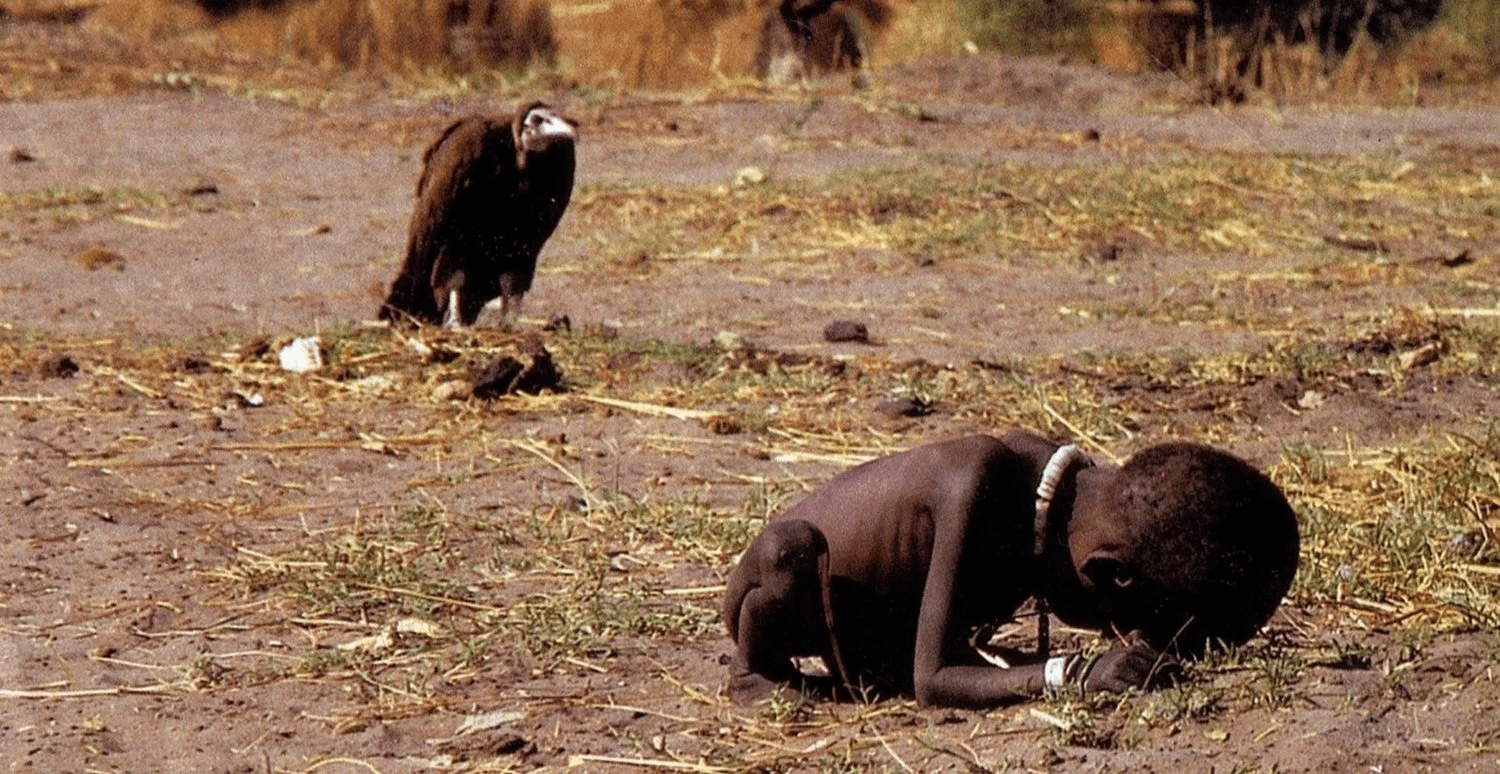 “The Vulture and the Little Girl” – Kevin Carter won the Pulitzer for this photo and took his own life four months later. The child, long believed to be a girl, was actually a boy named Kong Nyong, who survived the famine and died in 2007- (Sudan Mar/1993) 1500 × 783