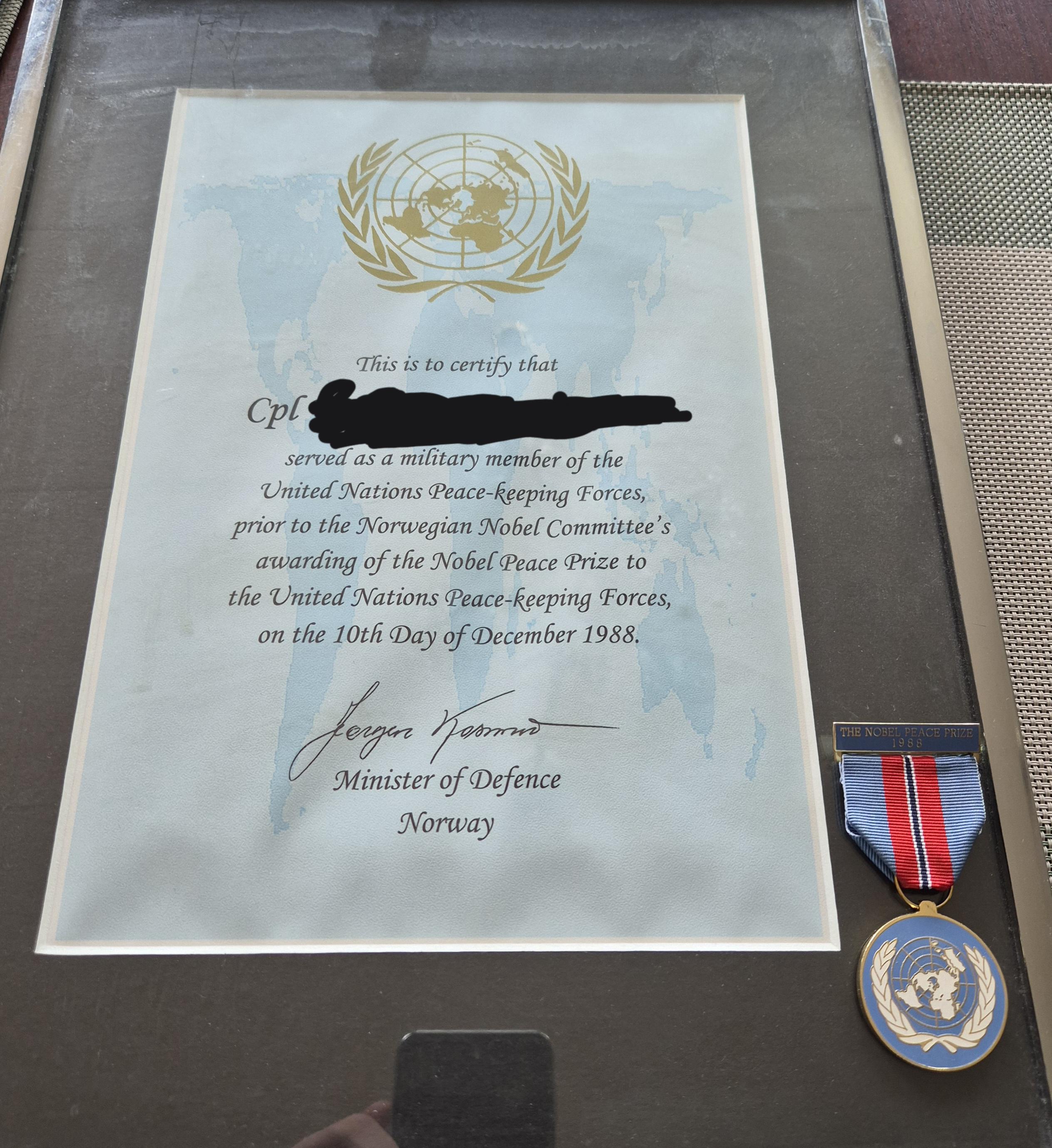 For context, the 1988 Nobel Peace Prize was awarded to the “United Nations Peacekeeping Forces” and given to such soilders “for preventing armed clashes and creating conditions for negotiations”. The award recognized the voluntary service and sacrifice of over 500,000 personnel. Whilst super cool, not as rare as the **traditional peace prize**. Still epic
