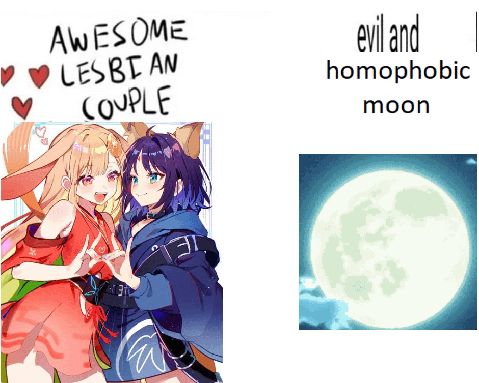 That fucking moon is the biggest hater in the verse for no reason. Let the girls have one night of peace without some celestial bullshit getting in the way