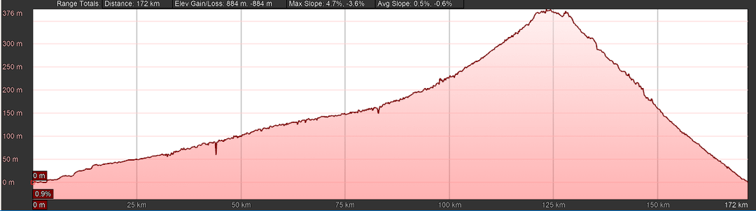 It looks like the mountainous bit is similarly graded but shorter, and the Western half is also similarly graded but shorter.