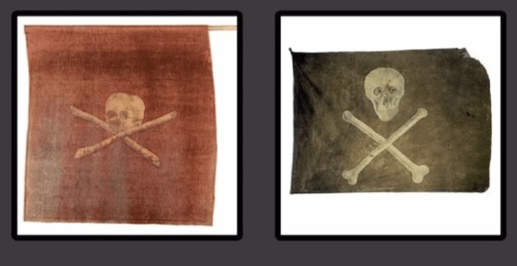 The black flag (Jolly Roger) meant pirates would offer quarter (mercy) if the target surrendered; a red flag meant no mercy, ensuring a fight to the death. While many pirate flags are depicted in media, very few physical examples from the Golden Age of Piracy have survived, with these two being the most prominent.