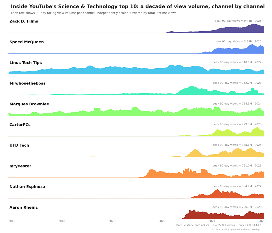 what constitutes “science and technology”? as another commenter already said, this seems oriented towards computer channels than general science and technology.