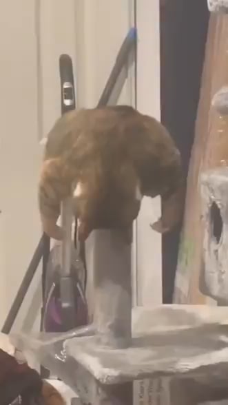 Pipe_Memes on April 28, 2026 7:05 pm What am I looking at here? Is he on a cat tree and his body just kind of engulfed the entire platform?