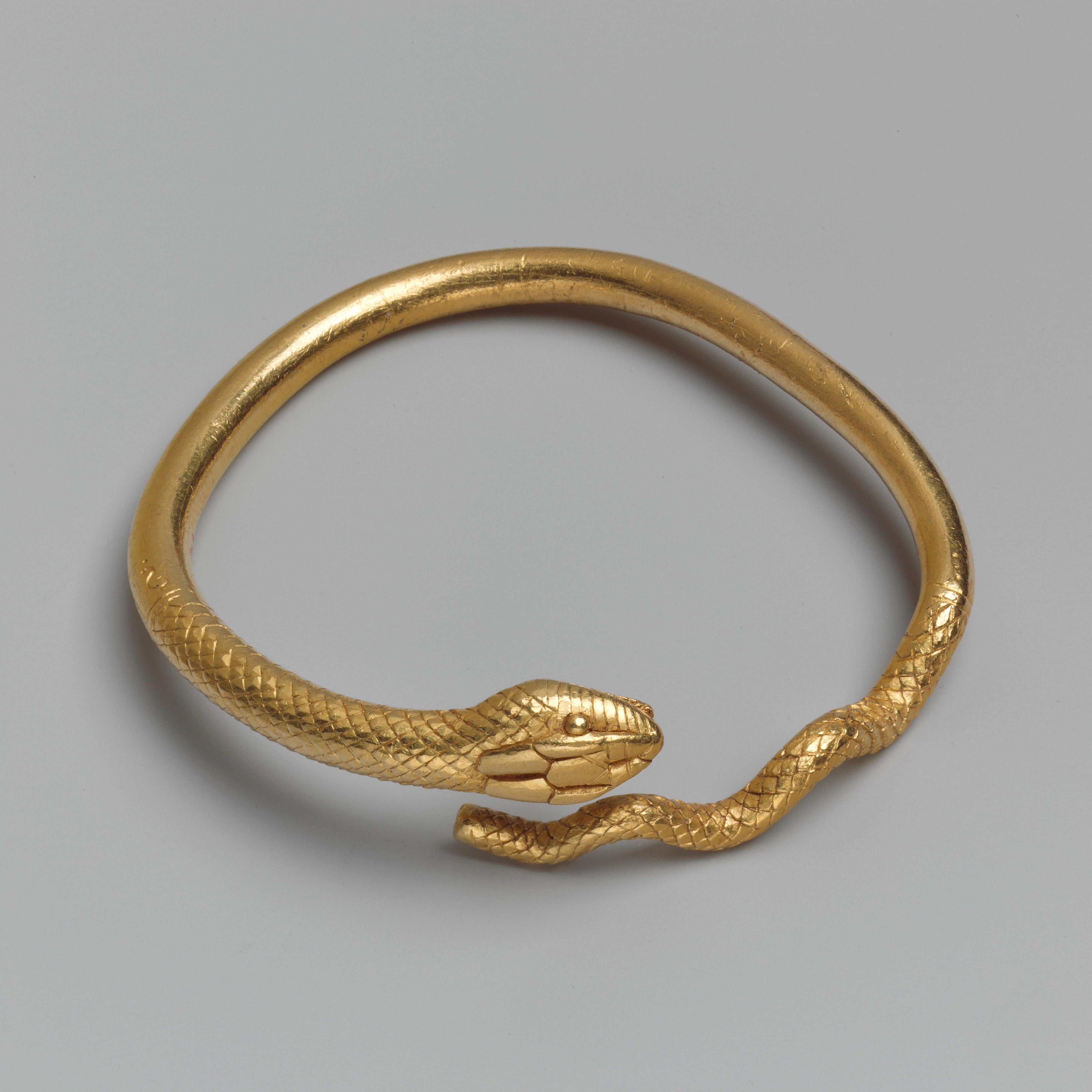 Share Facebook Twitter LinkedIn Pinterest Bluesky Threads Gold bracelet in the form of a snake- Greek, Ptolemaic (ca. 300–250 BCE)[4000×4000] by MCofPort