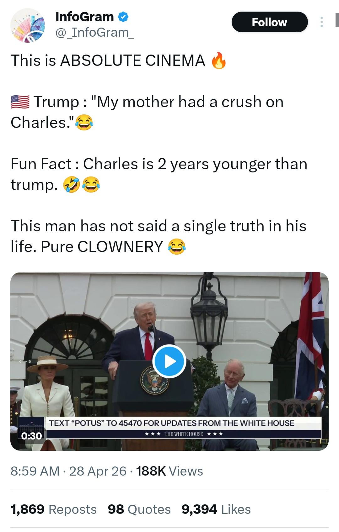 9. Trump just posted in truth he’s Charles secret cousin. That would make Trump’s mom Charles’s aunt. Yep. That tracks.