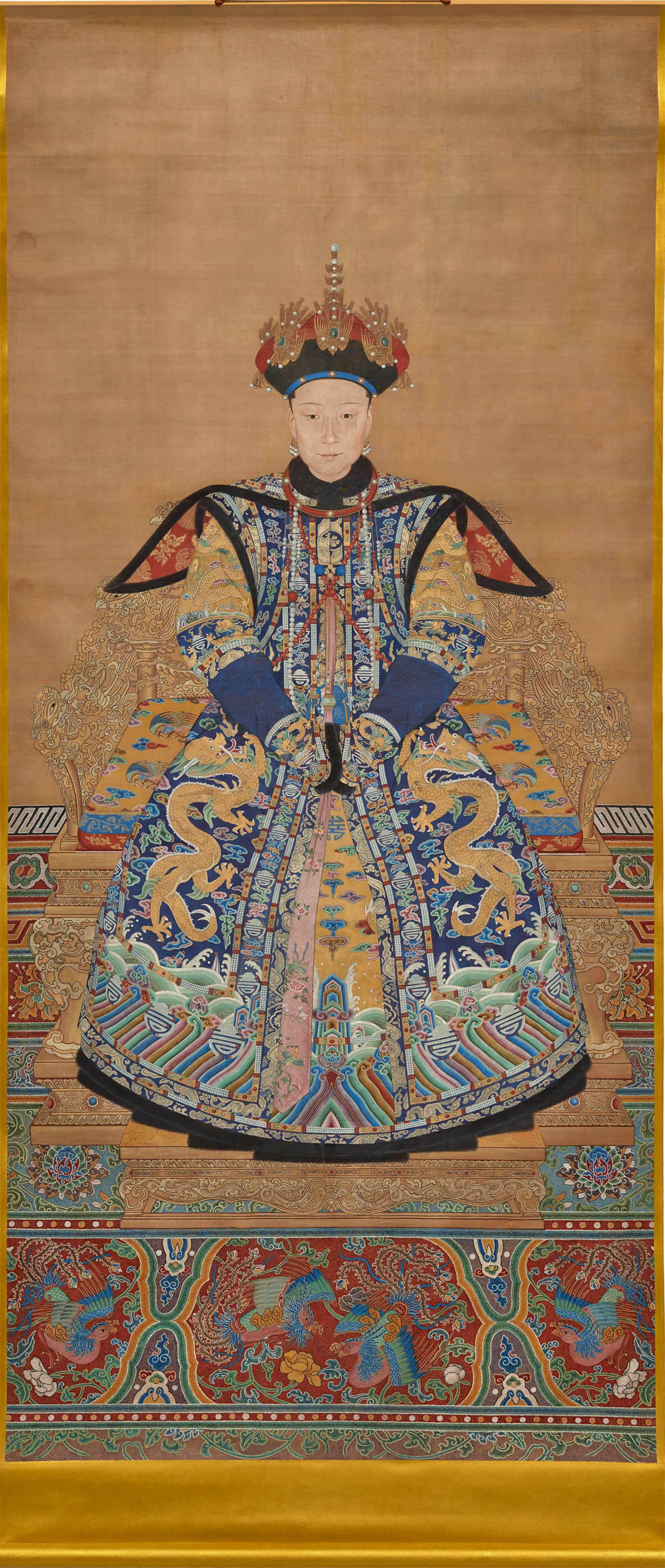 Though the artefact (a posthumous portrait as Empress Xiaoxianchun died in 1748) contains no inscription to denote the subject’s identity, comparing her facial features with 2 of her portraits in The Palace Museum (one in similar winter *chaofu* & one in imperial yellow *jifu*, the latter possibly painted by Jean Denis Attiret) & her individual portrait from [“Portraits of the Qianlong Emperor and His Twelve Consorts”](https://www.clevelandart.org/art/1969.31) in The Cleveland Museum of Art, the similarities are undeniable.