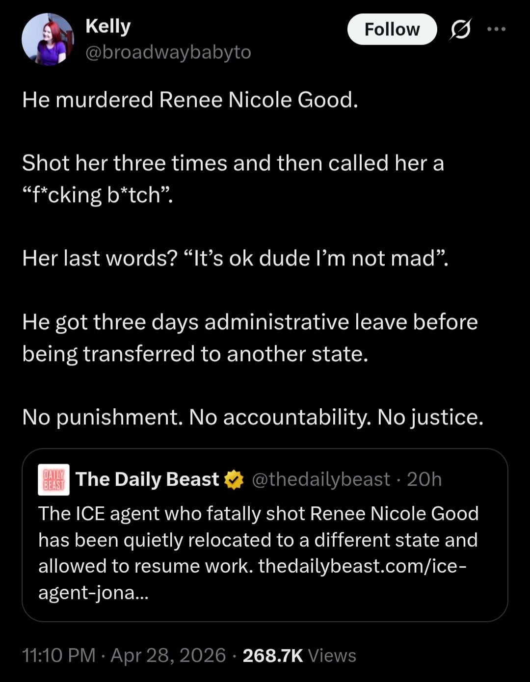 There will be no justice whatsoever to either of the agents who killed either of these people.