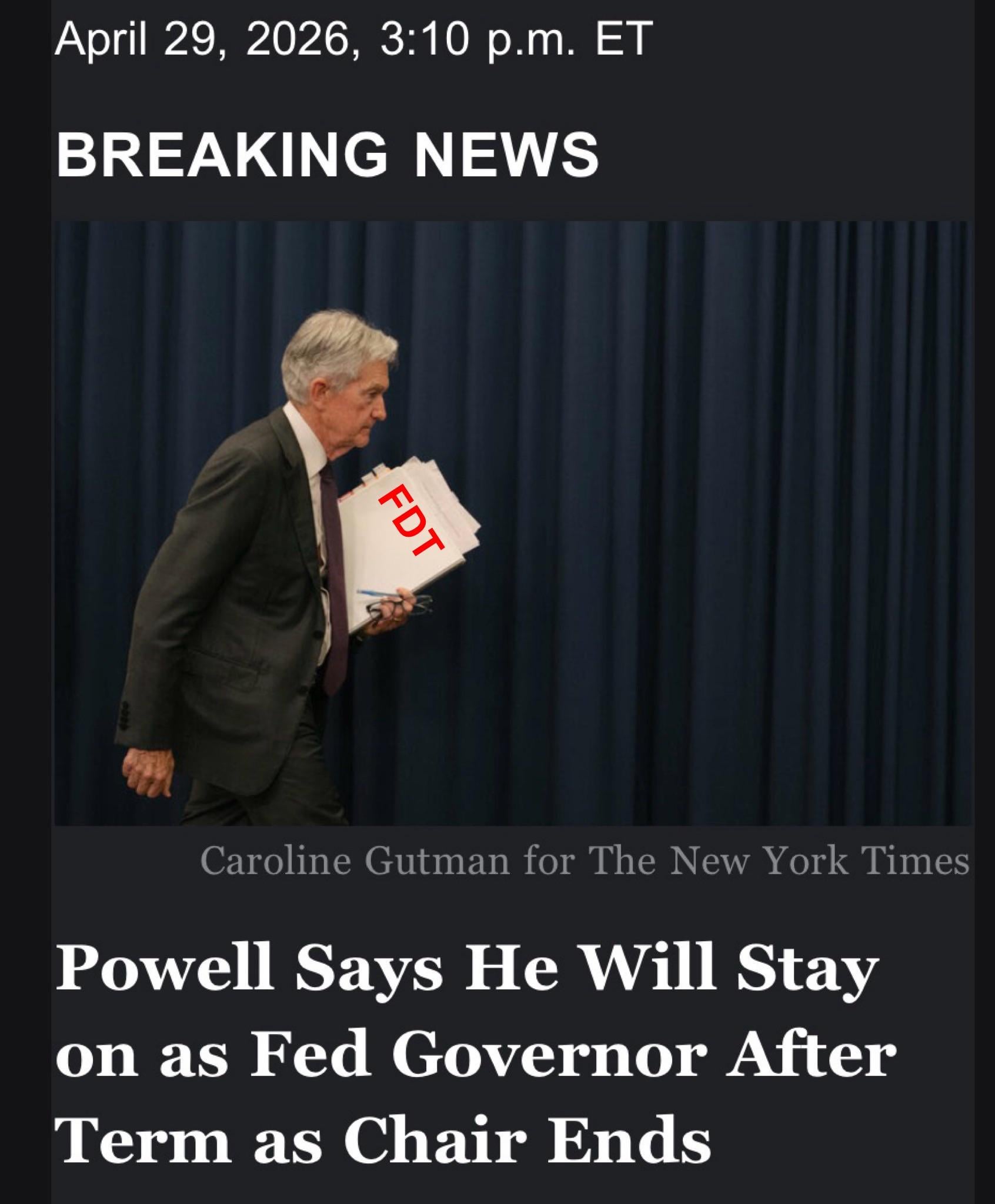TravisPickledriver on April 29, 2026 8:45 pm Jerome Powell will be remembered as one of the heroes of the resistance to this attempt at a fascist takeover of our country.