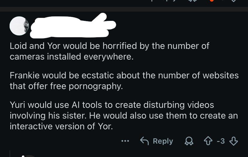 QueenOfTheDead2023 on April 29, 2026 9:19 pm Ngl, having watched Spy X Family, the part about Yuri feels disturbingly accurate lol.