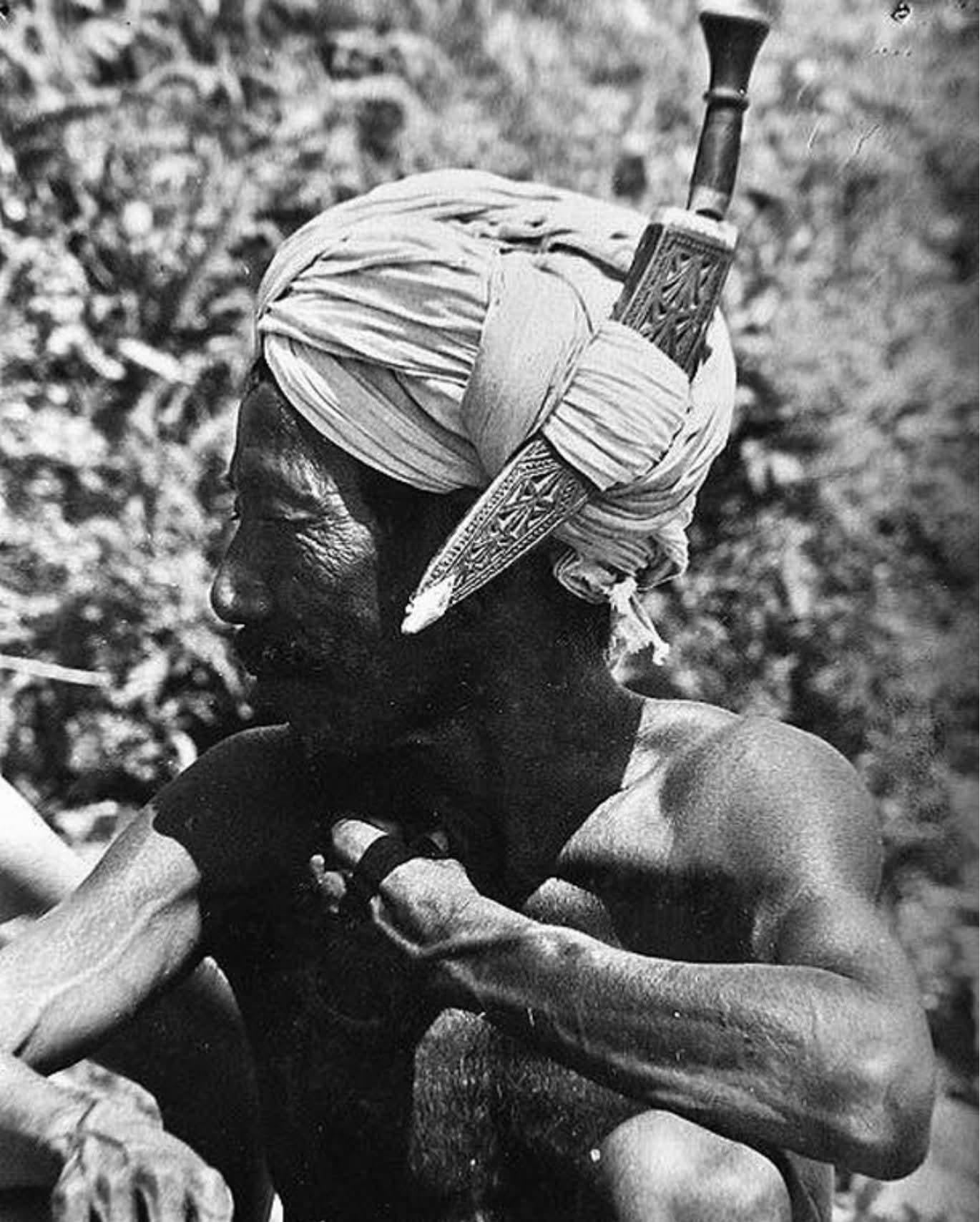 Share Facebook Twitter LinkedIn Pinterest Bluesky Threads Nepalese man with tucked khukri in his truban, 1967 [1307×1708] by gorekass