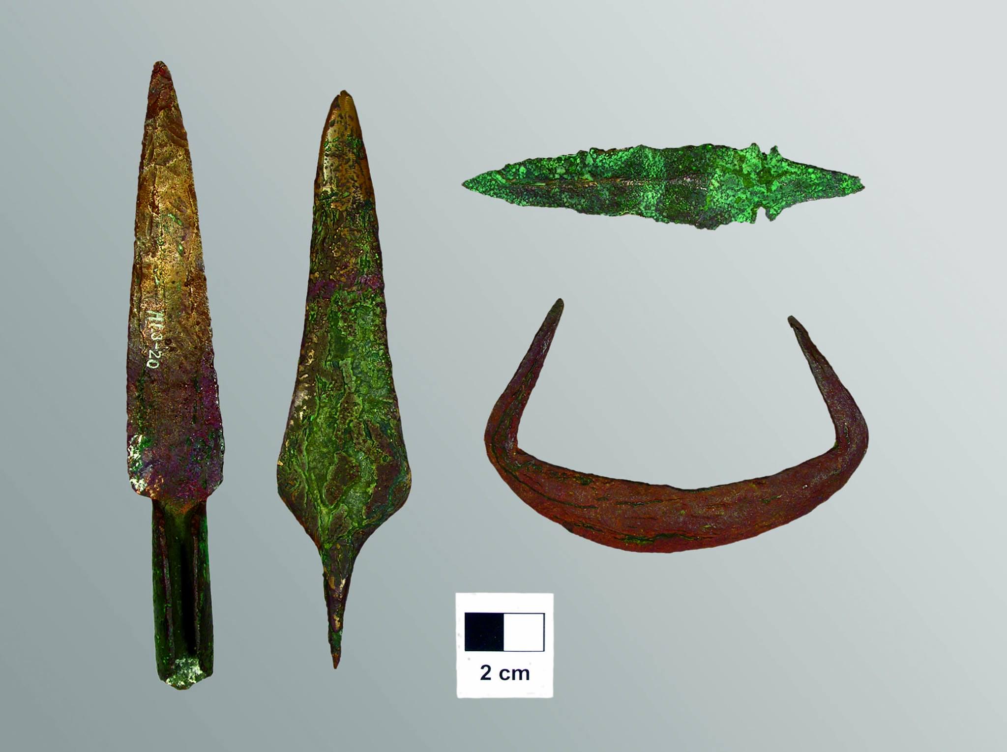 Artifacts Types from left to right (based on Warren Wittry's 1950-1951 copper artifact typology): I-A, I-D, I-E (top), III-B1 (bottom).