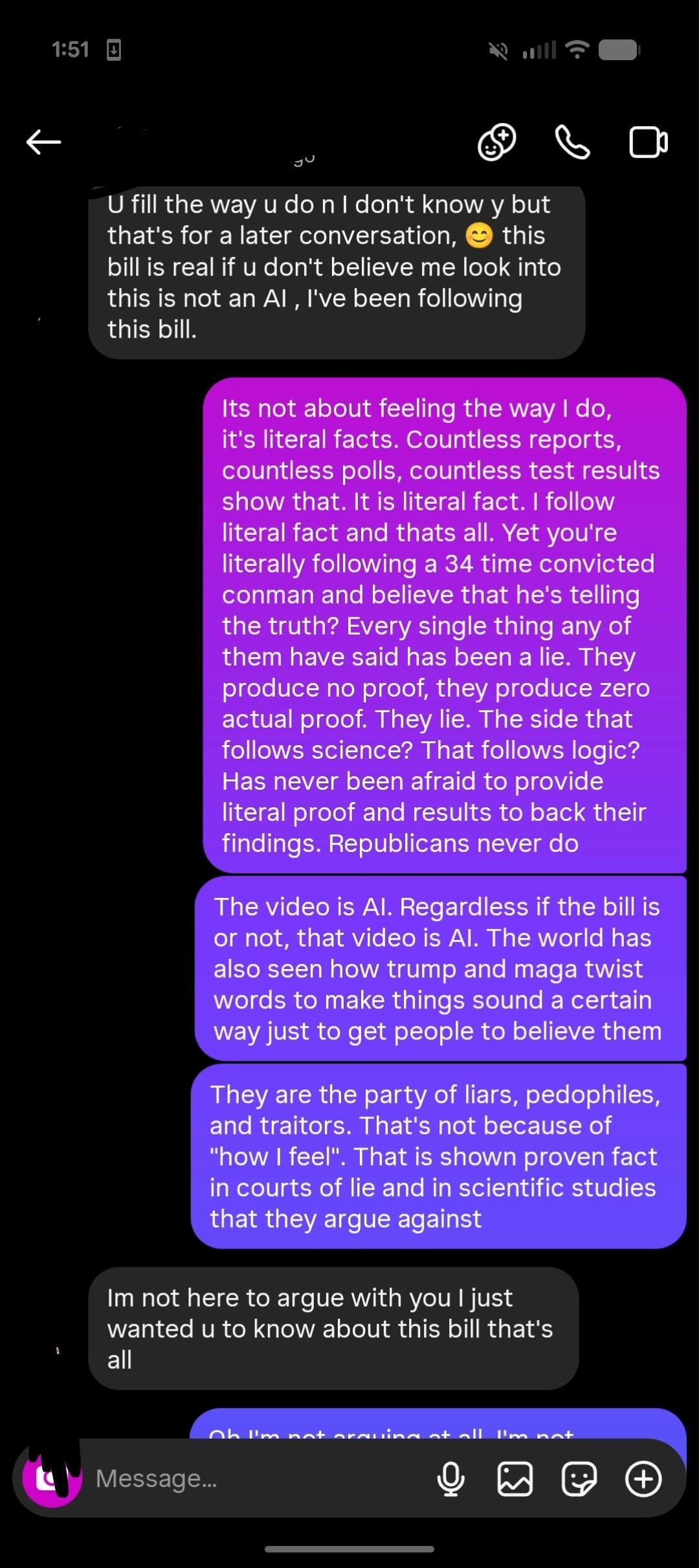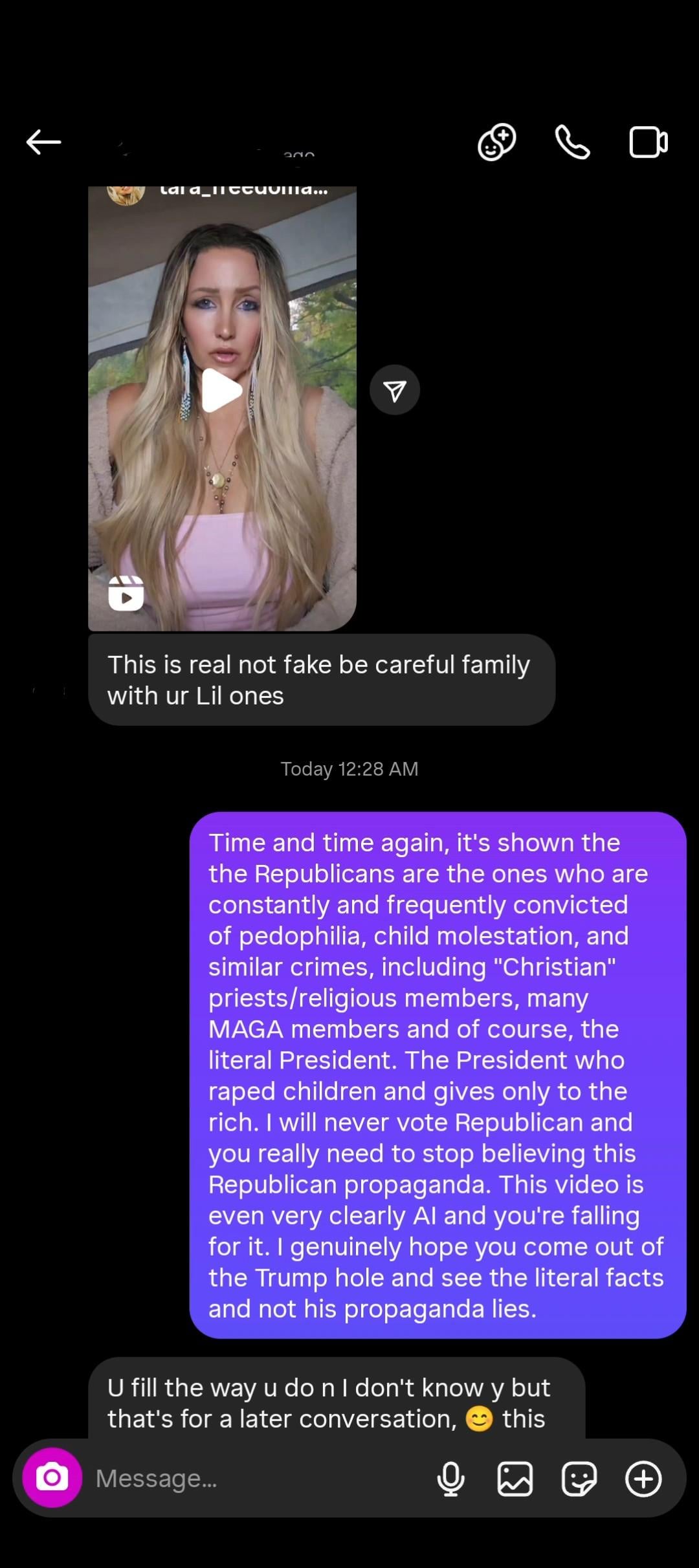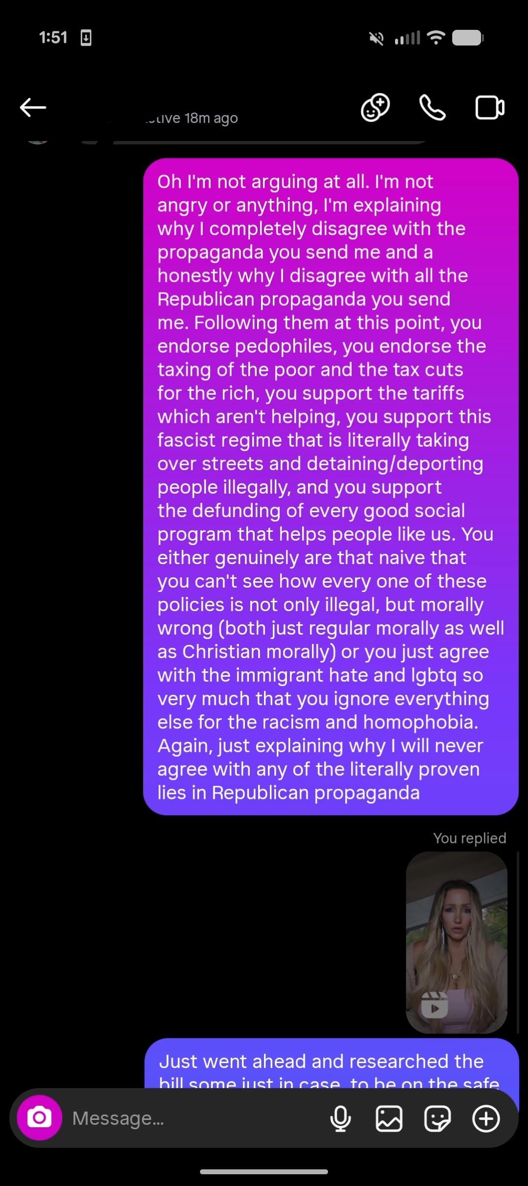 My uncle constantly sends me Republican propaganda. A lower to middle class Mexican man btw which makes it even stupider. This year has been my final straw and I won't just sit back and ignore it anymore. We have to call these people out. It's always "I don't want to argue" but we know what that really means is "I don't have actual facts to back up why I support Trump other than I'm a racist, bigot, or both."